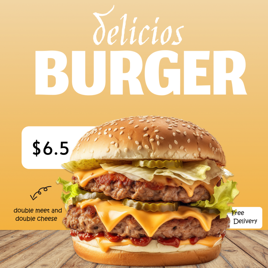 Tinggalkan Komentar / Oleh albybudiman / 6 Agustus 2024 " Poster Design " Assalamualaikum, hello guys, come back with me this time I will show you my assignment, namely poster design, so this is my design, I made a delicious burger poster and it also has a price too, I made this poster design in Figma