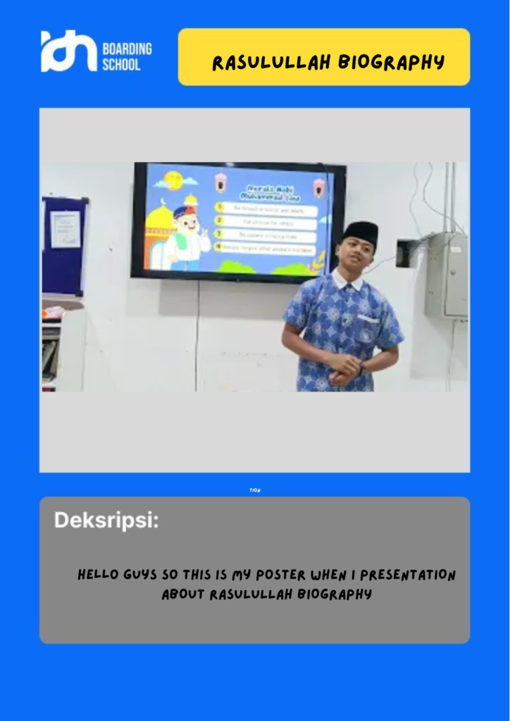 Tinggalkan Komentar / Oleh albybudiman / 5 Maret 2025 " Rasulullah Biography " assalamualaikum, hello everyone, back again, everyone is together, again in my assignment, in this assignment I will show you my assignment, namely Rasulullah biography, and there I made a presentation about Rasulullah from childhood to adulthood.