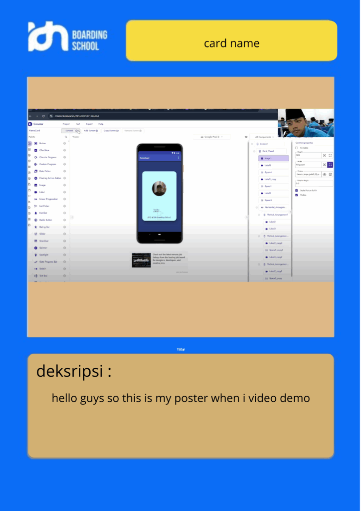 Assalamualaikum, guys, back again with my assignment this time. I will show you my assignment which is about name cards, and I also made this name card in Kodular too, so in this assignment there is no way to work, it just displays the name card as usual.