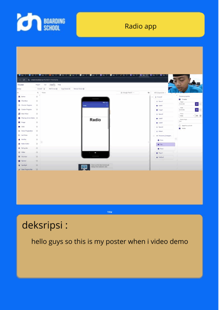 Assalamualaikum, hello guys, back again with me on my assignment this time I will show you my assignment which is about the radio app and I made this radio app in the Kodular application, and how it works is when you press start, a sound like a song will come out, but I changed it to a letter from the Koran
