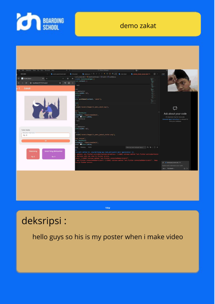 Tinggalkan Komentar / Oleh albybudiman / 13 November 2025 " demo zakat islami " Hello everyone, I'm back with you again on my assignment. This time I'm going to show you my assignment about the Islamic zakat demo video on flutter bittaqwa, and in that video I show the zakat screen. If you want to see my video, click below.