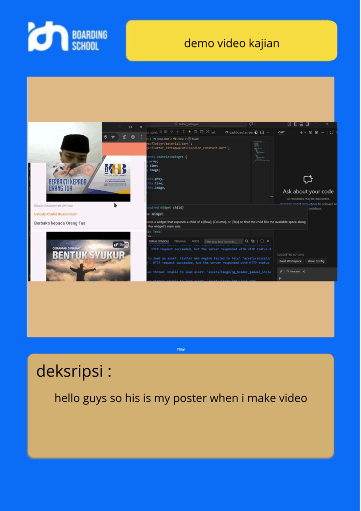 Assalamualaikum hello guys, back again with me on my assignment this time I will show off my IT assignment, yes it's still flutter bittqwa, so in this IT assignment I made a demo video, namely a demo of a study video and in that video there are lots of study videos from ustadz