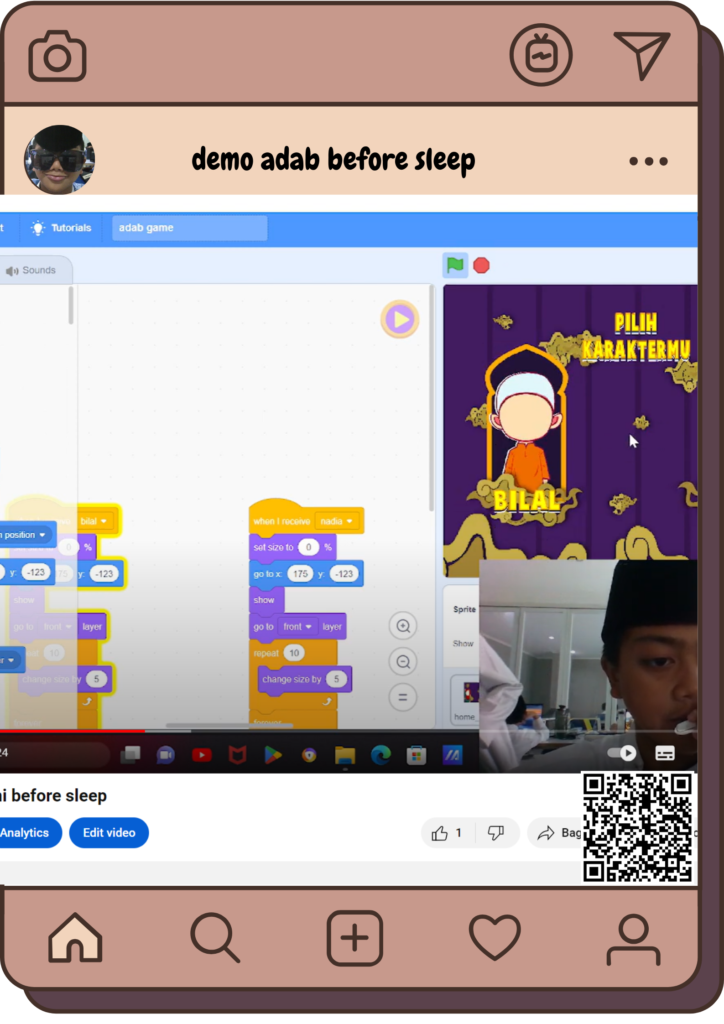 Tinggalkan Komentar / Oleh albybudiman / 6 Maret 2024 ADAB BEFORE SLEEP so this is my game that I made from scratch, so in this game we only see the manners before going to bed and you can imitate them and if you want the game you can scan my qr